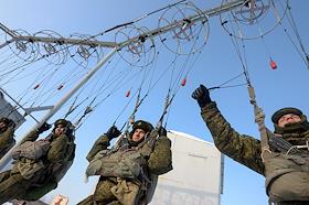 Рязанское высшее воздушно-десантное командное училище имени генерала армии В.Ф. Маргелова. Курсанты училища во время занятий по парашютному делу.