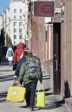 Жанровая фотография. Мужчина с большими сумками и рюкзаком идет по Тверской улице.