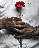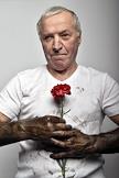 Обложка для журнала "Деньги". Мужчина в грязной майке держит грязными руками гвоздику.