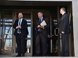 10-я сессия Смешанной комиссии по экономическому сотрудничеству между Российской Федерацией и Бельгийско-Люксембургским экономическим союзом. Заместитель председателя Правительства России Дмитрий Рогозин (в центре) после заседания в Президент-Отеле.