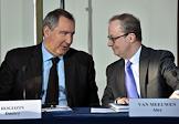 10-я сессия Смешанной комиссии по экономическому сотрудничеству между Российской Федерацией и Бельгийско-Люксембургским экономическим союзом. Вице-премьер Правительства Люксембурга Этьен Шнайдер (слева) и заместитель председателя Правительства России Дмитрий Рогозин (справа) на заседании в Президент-Отеле.