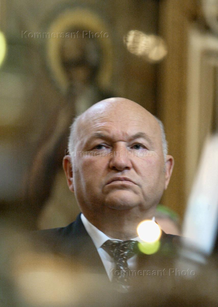 Мэр Москвы Юрий Лужков на церемонии отпевания руководителя театра "Новая Опера" Евгения Колобова, который скончался в воскресенье на 58-м году жизни от сердечного приступа.