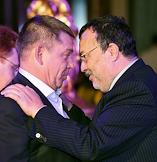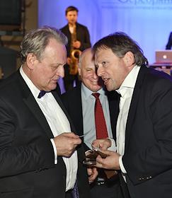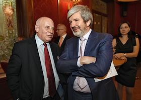 Церемония вручения Национальной премии в области развития общественных связей "Серебряный лучник". Президент холдинга "ГРУППА ИМА" Андрей Гнатюк (слева) и председатель совета директоров агентства "Р.И.М. Porter Novelli" Игорь Писарский (справа) на церемонии в отеле "Метрополь".