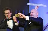 Церемония вручения Национальной премии в области развития общественных связей "Серебряный лучник". Президент холдинга "ГРУППА ИМА" Андрей Гнатюк (справа) на церемонии в отеле "Метрополь".