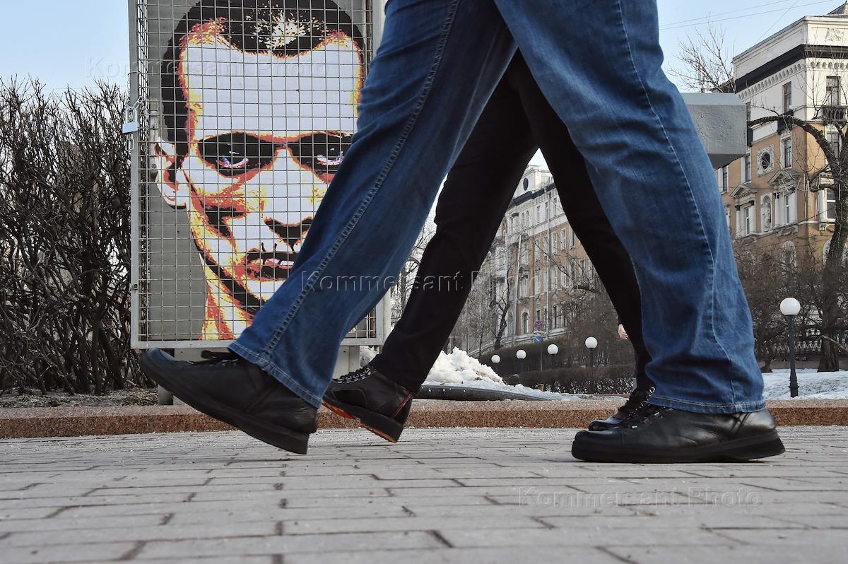 Портрет художника Петра Павленского, нарисованный пермским художником Александром Жуневым и помещенный им за решетку щита на площади Сретенских ворот.