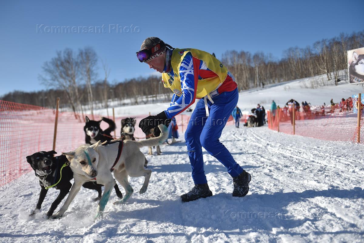 Opening ceremony for the traditional muching competitions 'Beringia 2016'. Food servery for dogs.