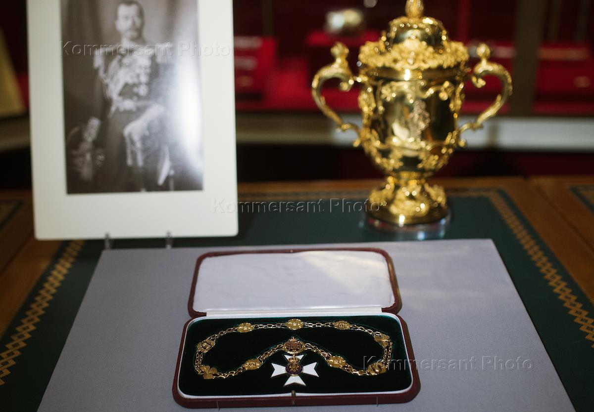 Церемония торжественной передачи Викторианской цепи Николая II из Королевской коллекции Великобритании в собрание Музеев Московского Кремля прошла в Оружейной палате Кремля.