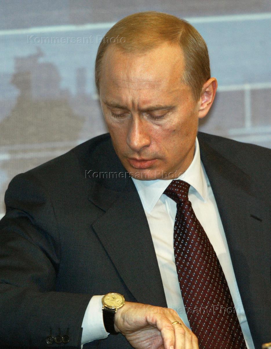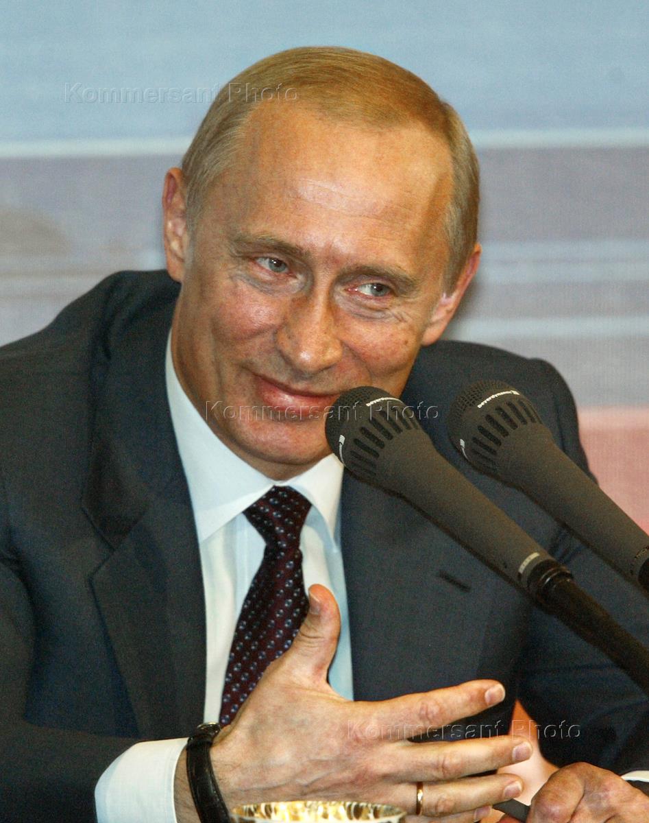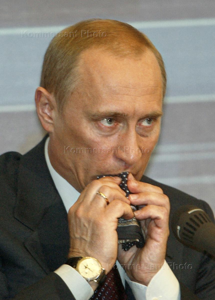Президент России Владимир Путин во время третьей ежегодной пресс-конференции, которая прошла в Круглом зале 14 корпуса Кремля. На встречу с главой государства аккредитовано более 700 представителей федеральных, региональных и иностранных средств массовой информации. Пресс-конференция длилась 2 часа 45 минут, было задано 48 вопросов, среднее время одного ответа - 3 минуты 44 секунды. Подавляющее большинство вопросов касались внутренних проблем России (41 вопрос) и только 7 были посвящены международным делам.