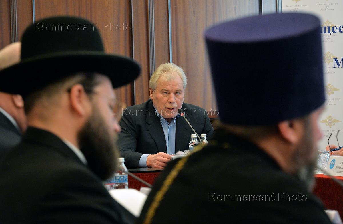 Заседание общественного совета при МВД России и расширенной рабочей группы при министерстве по дальнейшему реформированию органов внутренних дел. Протоирей Сергей Привалов (слева) и раввин Аарон Гуревич (справа) на заседании в здании МВД.