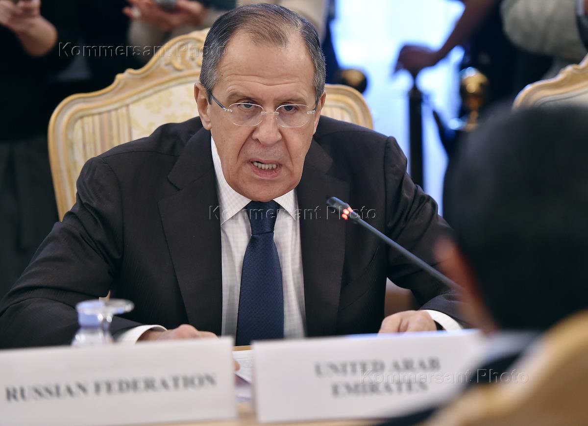 Министр иностранных дел России Сергей Лавров (слева) во время заседания Российско-арабского форума в Доме приемов МИД России.