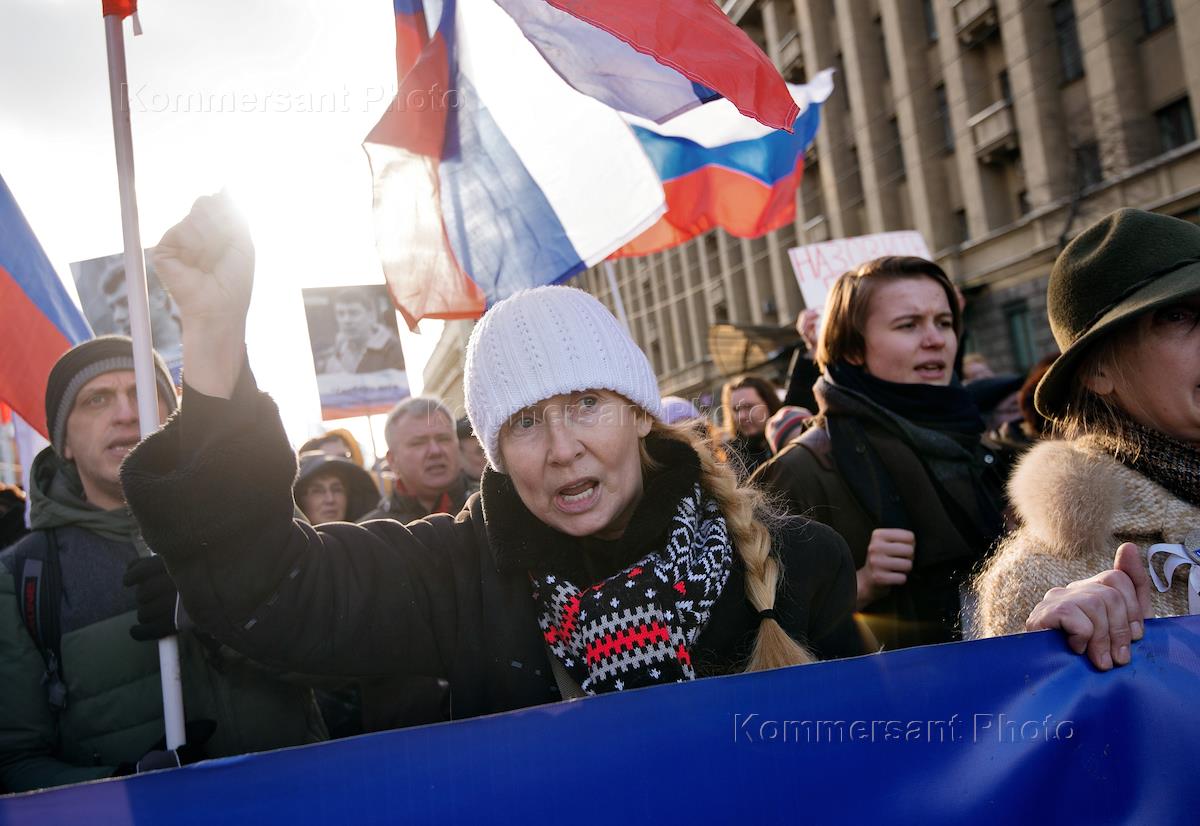 Участники марша памяти, посвященного годовщине убийства политика, общественного деятеля Бориса Немцова, по Бульварному кольцу от Страстного бульвара до Проспекта Сахарова.