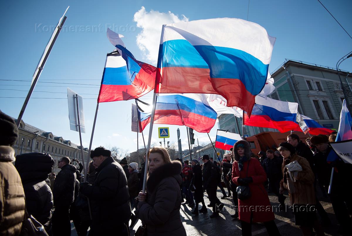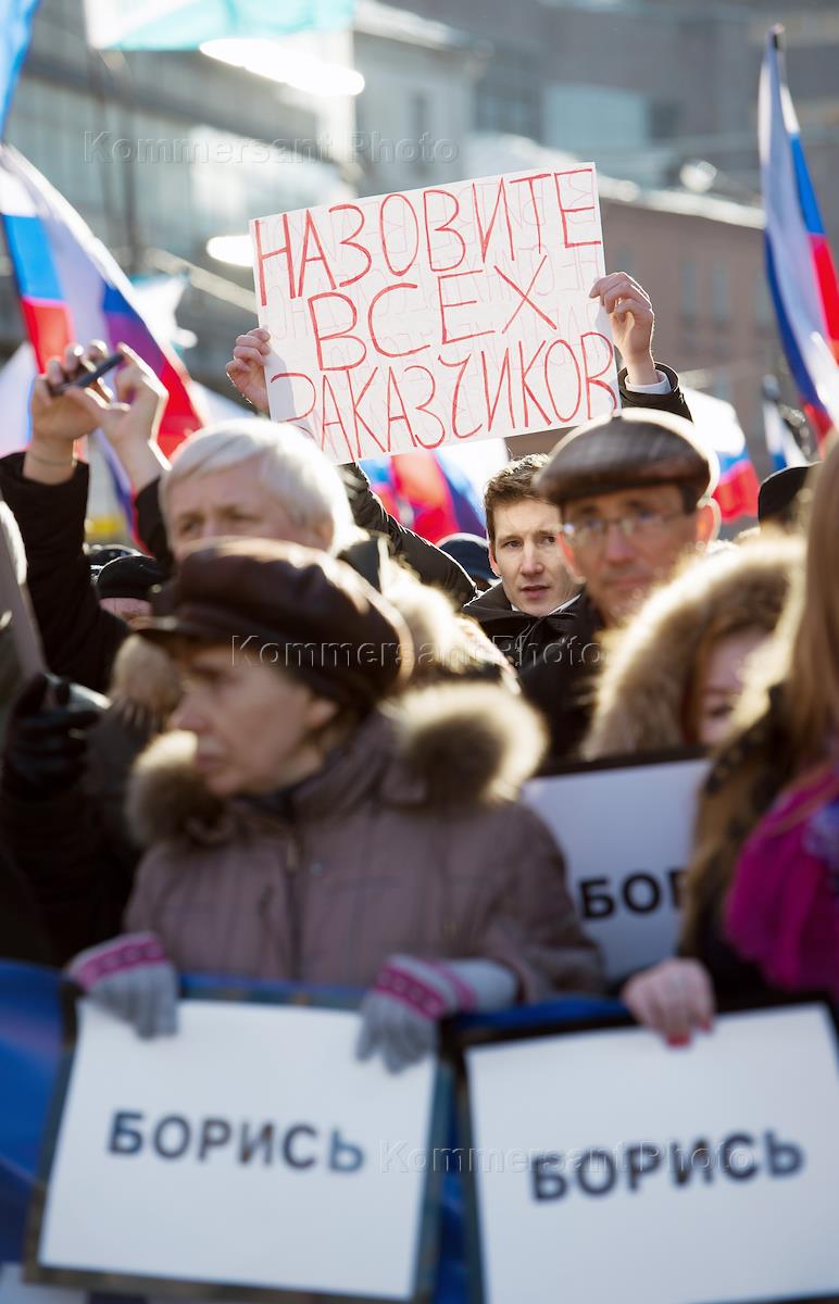 Участники марша памяти, посвященного годовщине убийства политика, общественного деятеля Бориса Немцова, по Бульварному кольцу от Страстного бульвара до Проспекта Сахарова.