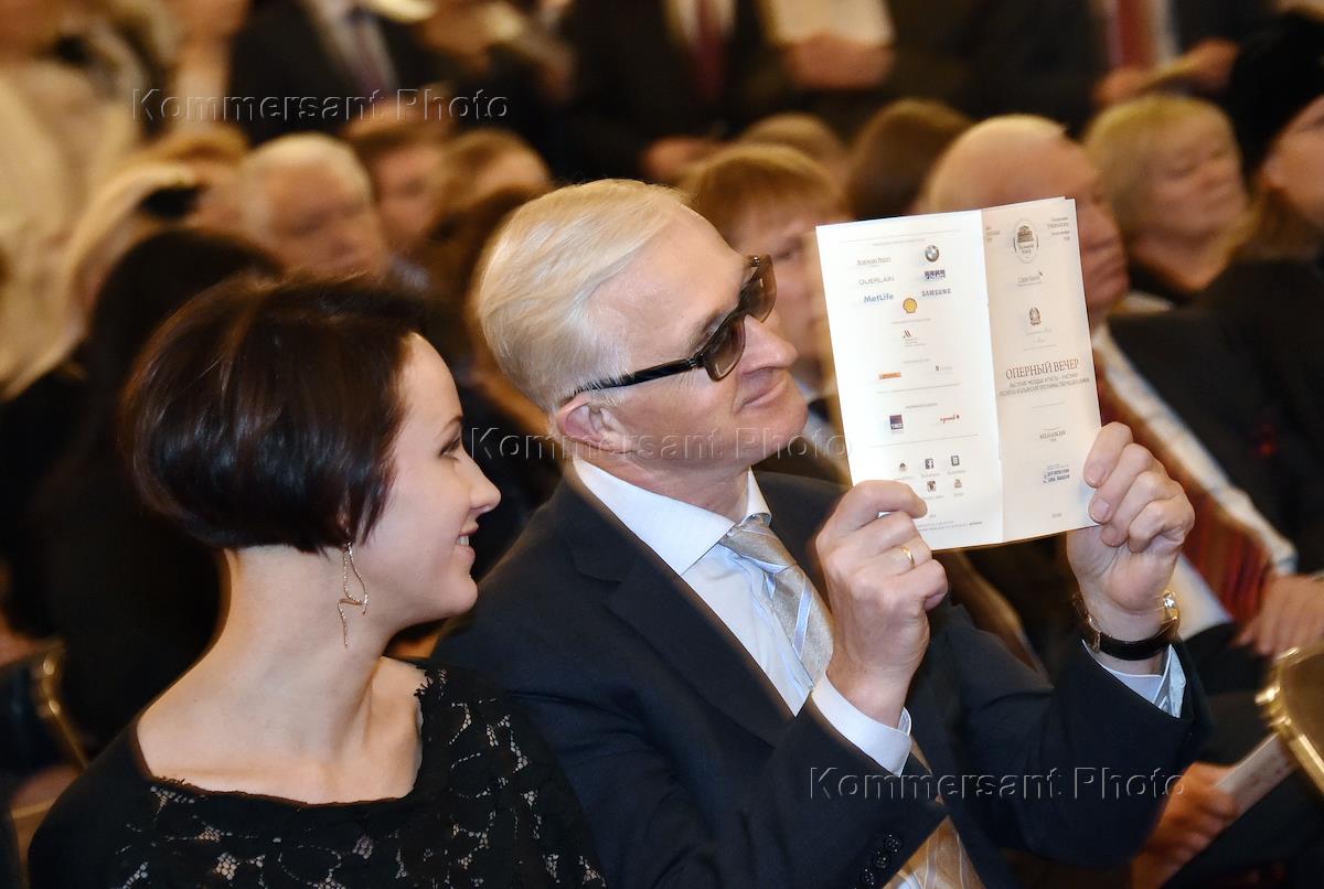 Президент Российского союза промышленников и предпринимателей Александр Шохин (справа) с дочерью Евгенией (слева) во время церемонии вручения ордена "За заслуги перед Итальянской республикой" степени офицера председателю совета директоров некоммерческого партнерства "Русбренд" Давиду Якобашвили. Церемония прошла в Особняке Берга.