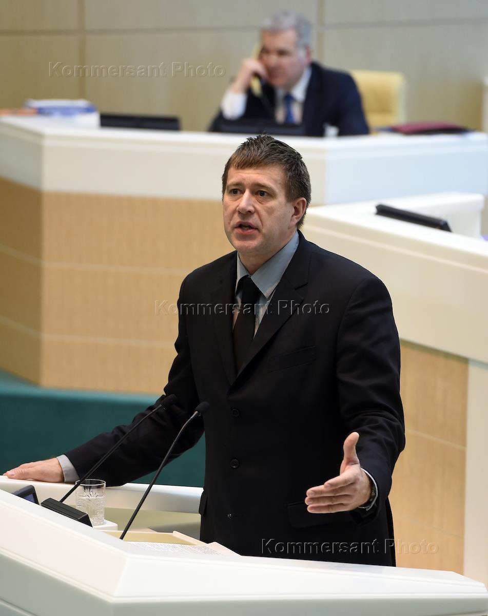 Minister of justice of Russia Aleksandr Konovalov is during the sitting of the Council of the Federation of Russia.