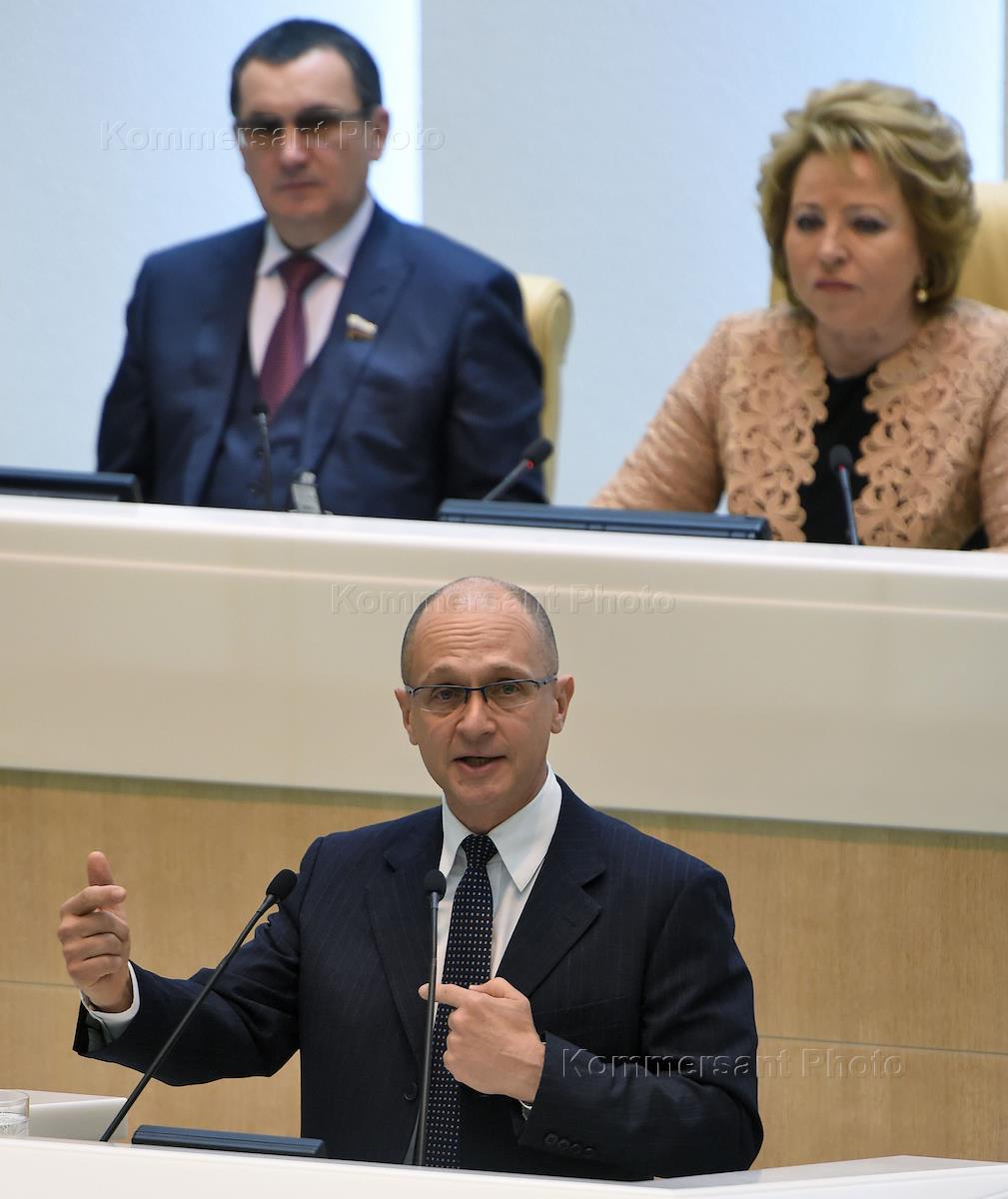 Chief director of the group of companies 'Rusatom' Sergey Kirienko is during the sitting of the Council of the Federation of Russia.