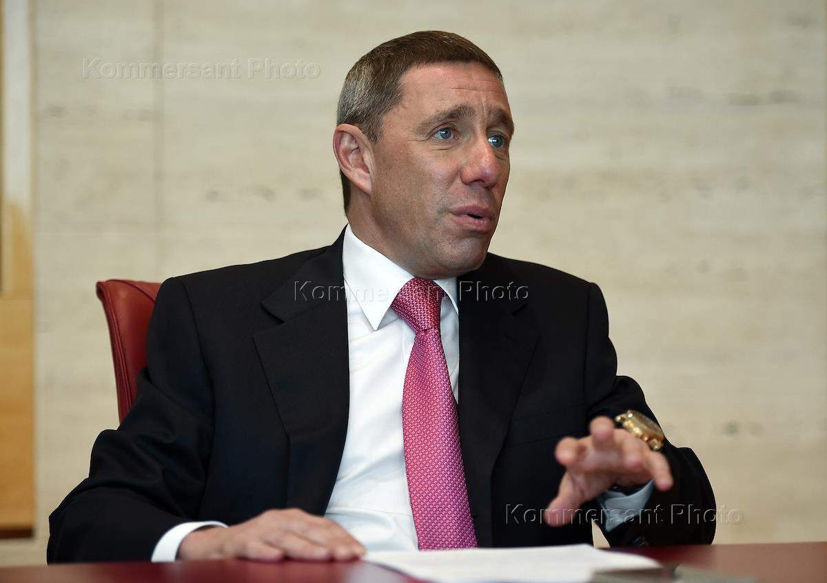 Owner of bank 'Uralsib' Vladimir Kogan is during an interview.