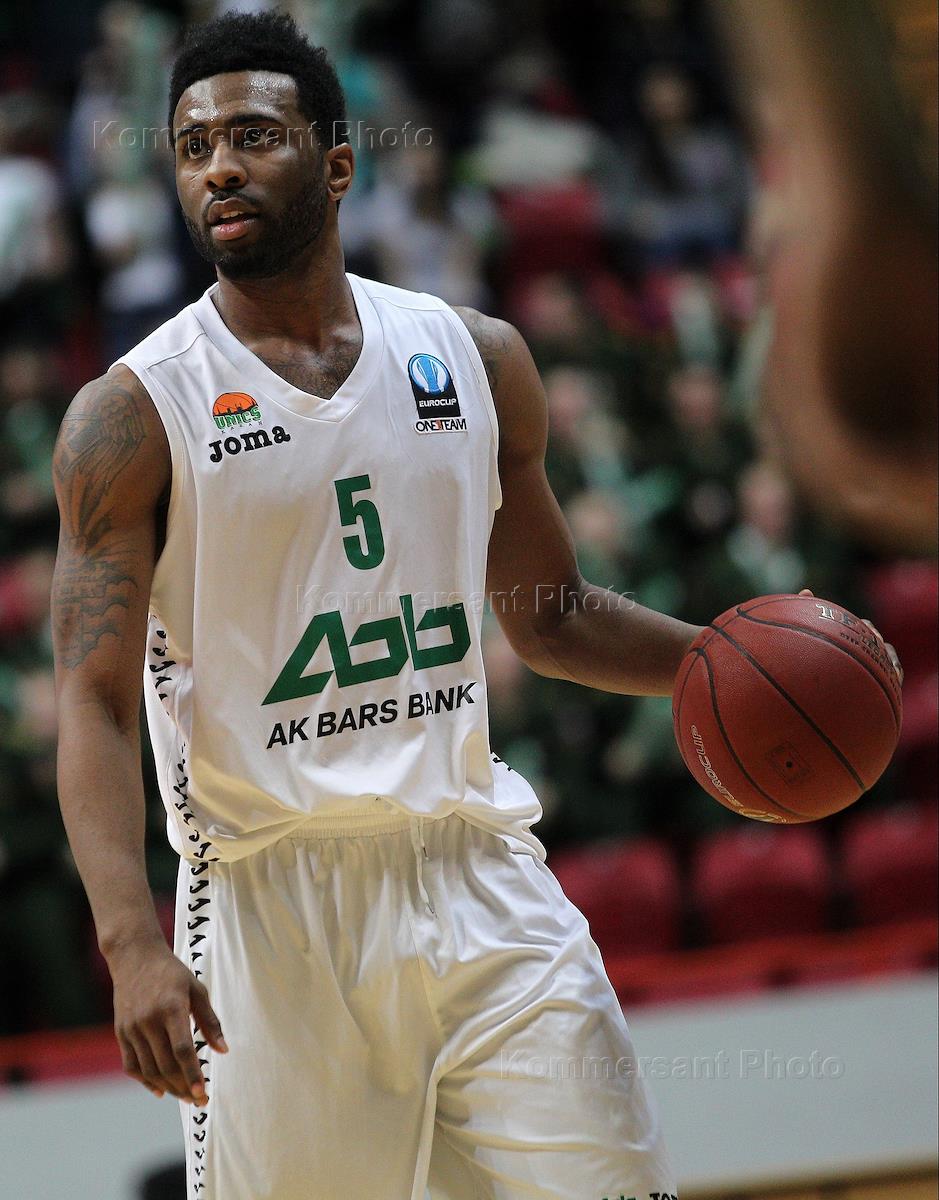 Еврокубок по баскетболу. 1\8 финала. Матч между командами УНИКС (Казань, Россия) и "Зелена Гура" (Зелена Гура, Польша). Игрок команды УНИКС (Казань) Кит Лэнгфорд во время матча.