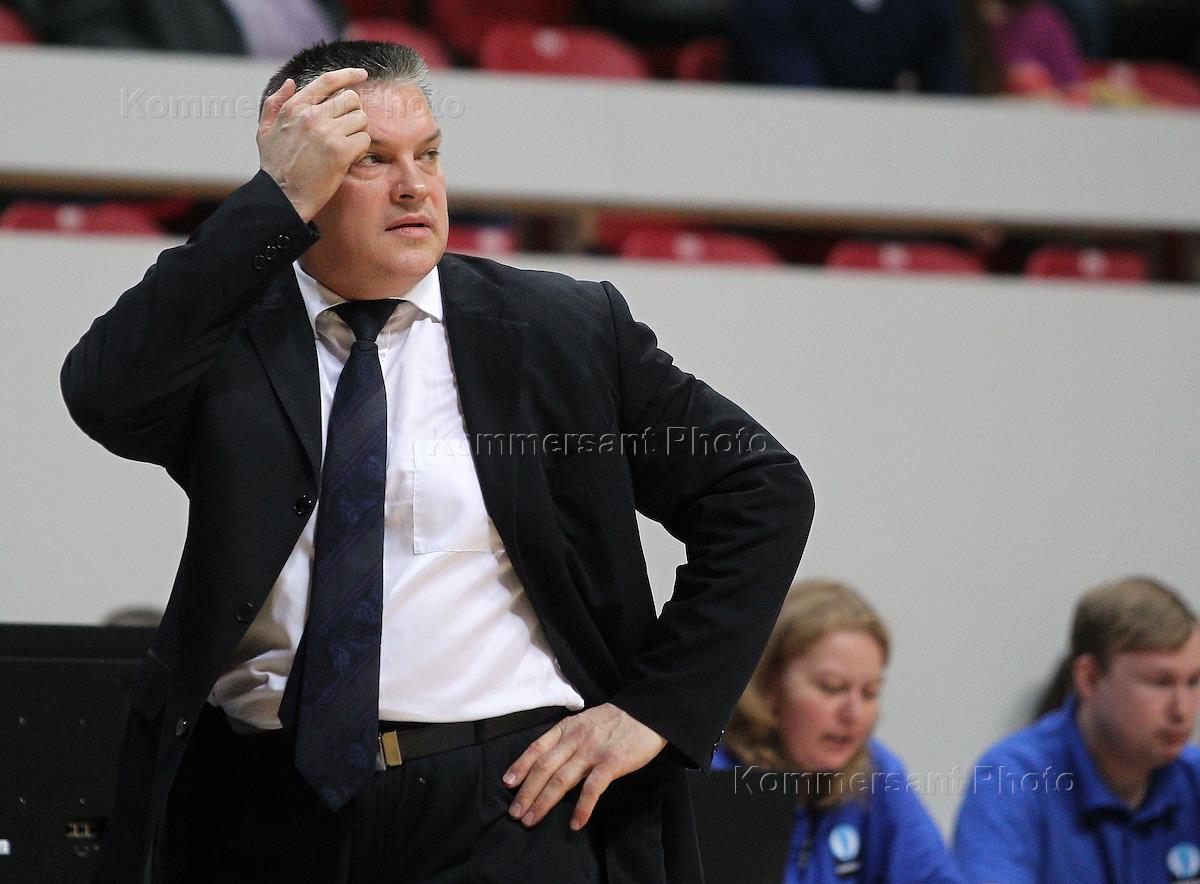 Еврокубок по баскетболу. 1\8 финала. Матч между командами УНИКС (Казань, Россия) и "Зелена Гура" (Зелена Гура, Польша). Главный тренер "Зелена Гура" Сашо Филиповски во время игры.