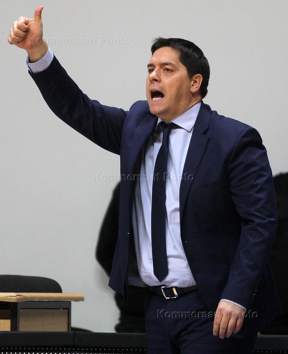 Basketball Eurocup. Last 16. The match between teams UNICS (Kazan, Russia) and 'Zielona Góra' (Zielona Góra, Poland). Chief coach of 'Zielona Góra' Sasho Filipovski is during the match.