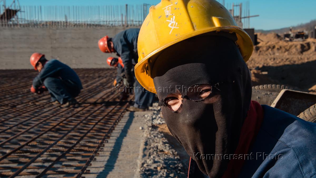 Жанровая фотография. Китайские рабочие на строийке в городе Благовещенске.