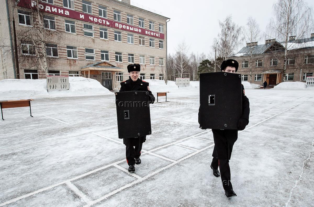 The solemn ceremony of administering the cadet oath for boarding schoolers, recruited in 2015. The ceremony held in Pozharsky National Defense Cadet corps in town Raduzhny. Preparation for the ceremony.