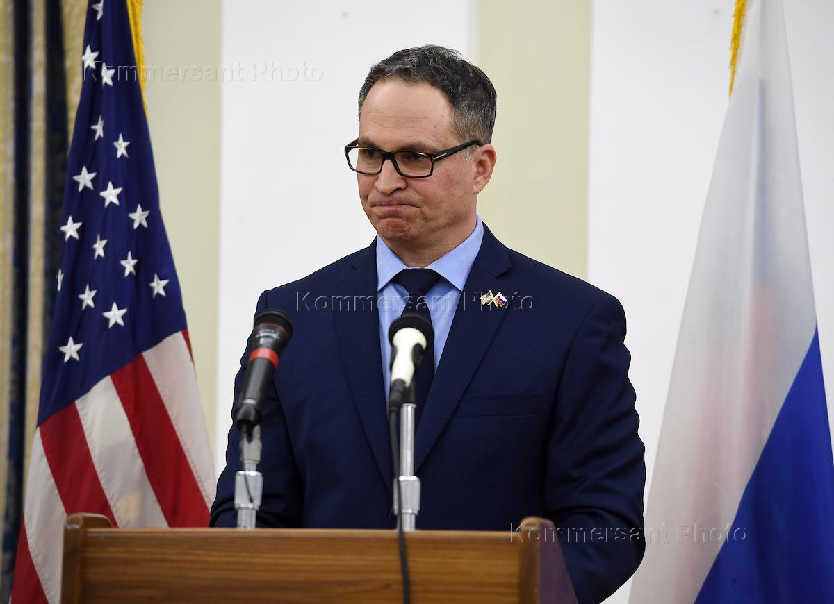 Чрезвычайный и Полномочный посол Соединенных Штатов Америки (США) в России Джон Теффт во время церемонии передачи Российской Федерации 28 исторических документов, похищенных из российских архивов в начале 1990-х годов. Церемония передачи документов прошла в резиденции посла США.