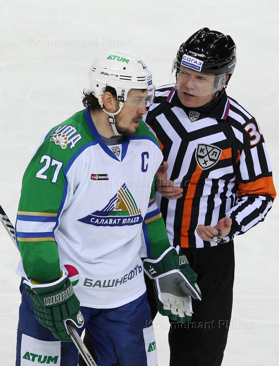 Континентальная хоккейная лига (КХЛ). Кубок Гагарина 2016. 1\8 финала. Матч между командами "Ак Барс" (Казань) и "Салават Юлаев" (Уфа). Капитан команды "Салават Юлаев" Игорь Григоренко (слева) во время игры.