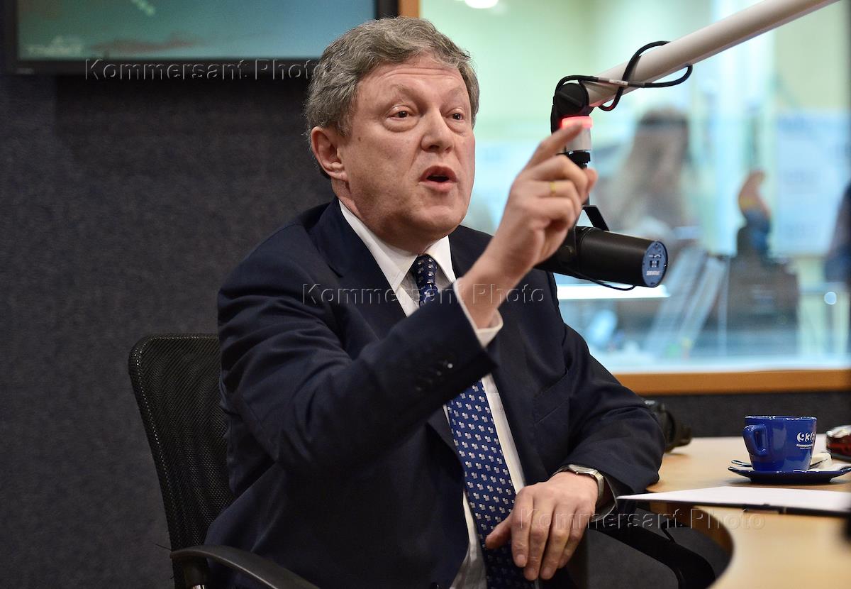 Head of faction of party 'Yabloko' in the Legidlative Assembly of Saint-Petersburg Grigory Yavlinsky is during an interview in the studio of broadcasting station 'Kommersant FM'.