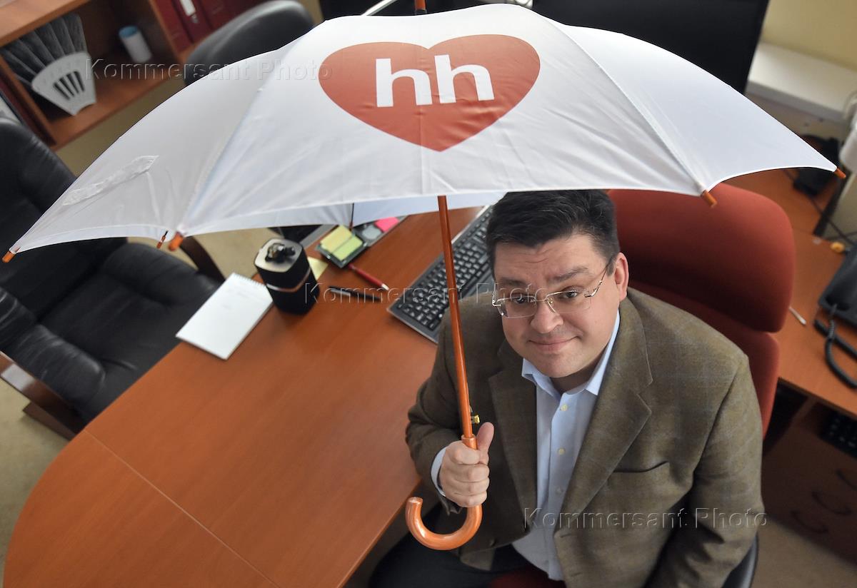 Chief director of company Headhunter Mikhail Zhukov is during an interview.