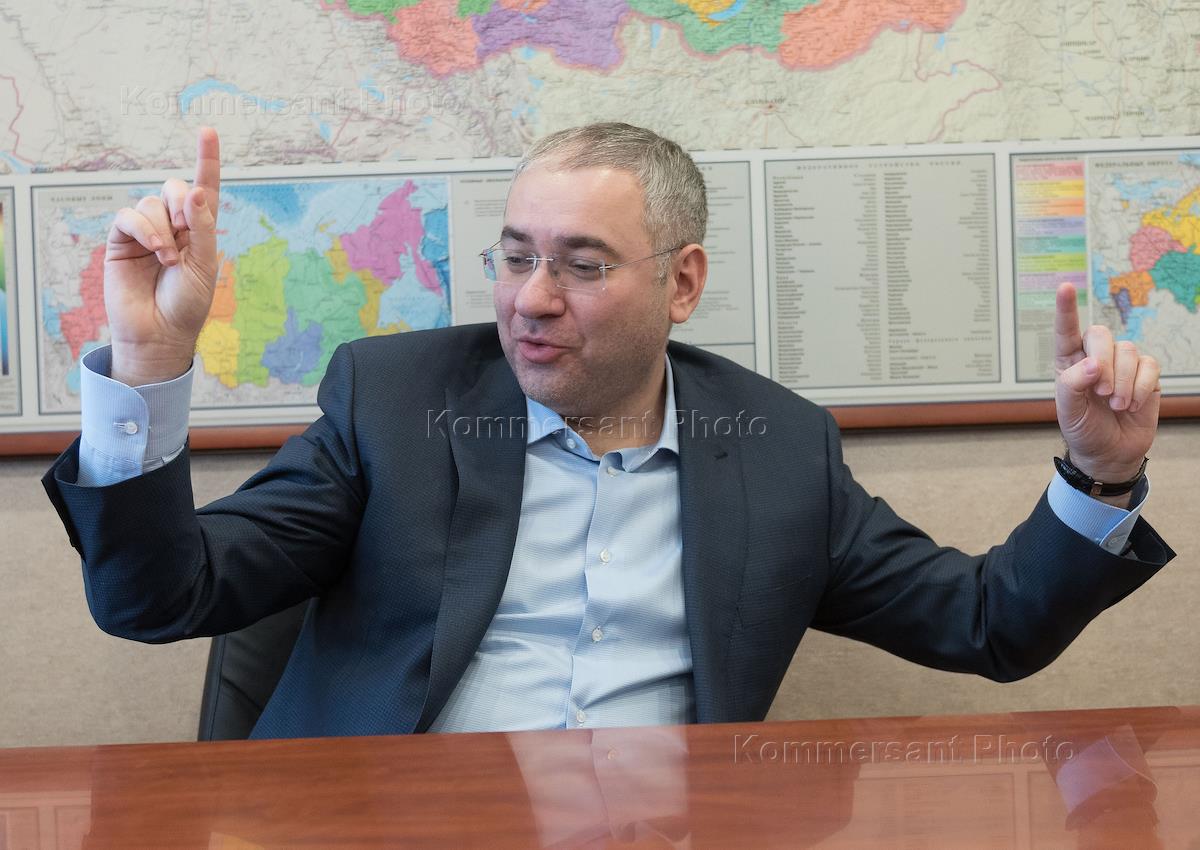 Chief director of Polymetal Vitaly Nesis is during an interview.
