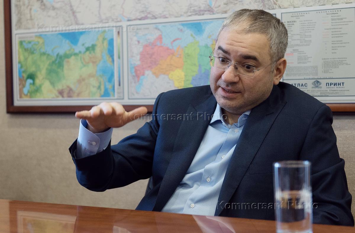Chief director of Polymetal Vitaly Nesis is during an interview.