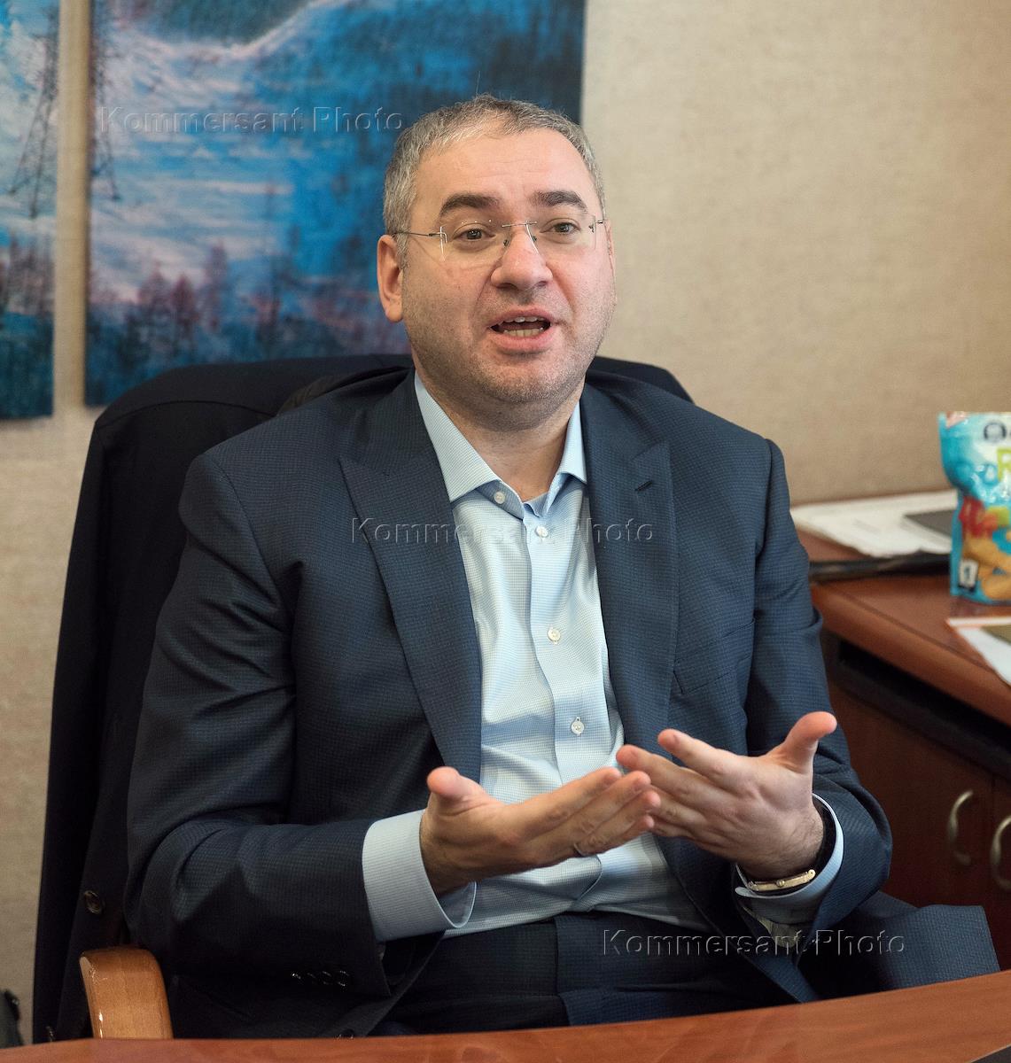 Chief director of Polymetal Vitaly Nesis is during an interview.