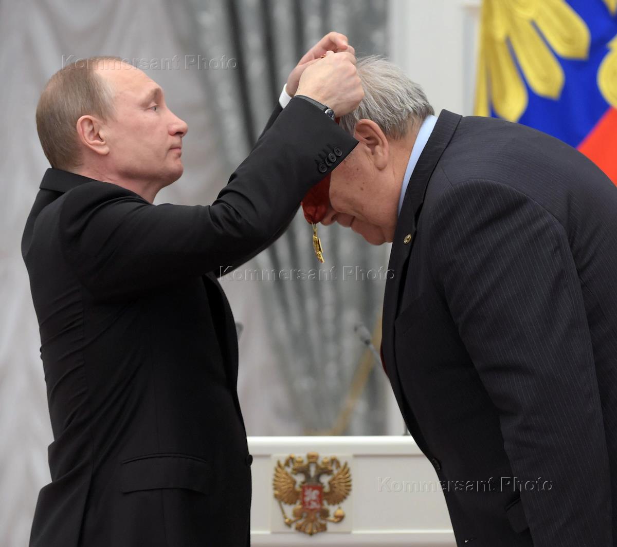 Actor Valentin Gaft at the ceremony of presenting state awards and honorary titles by Russian President Vladimir Putin in the Kremlin's Catherine Hall.