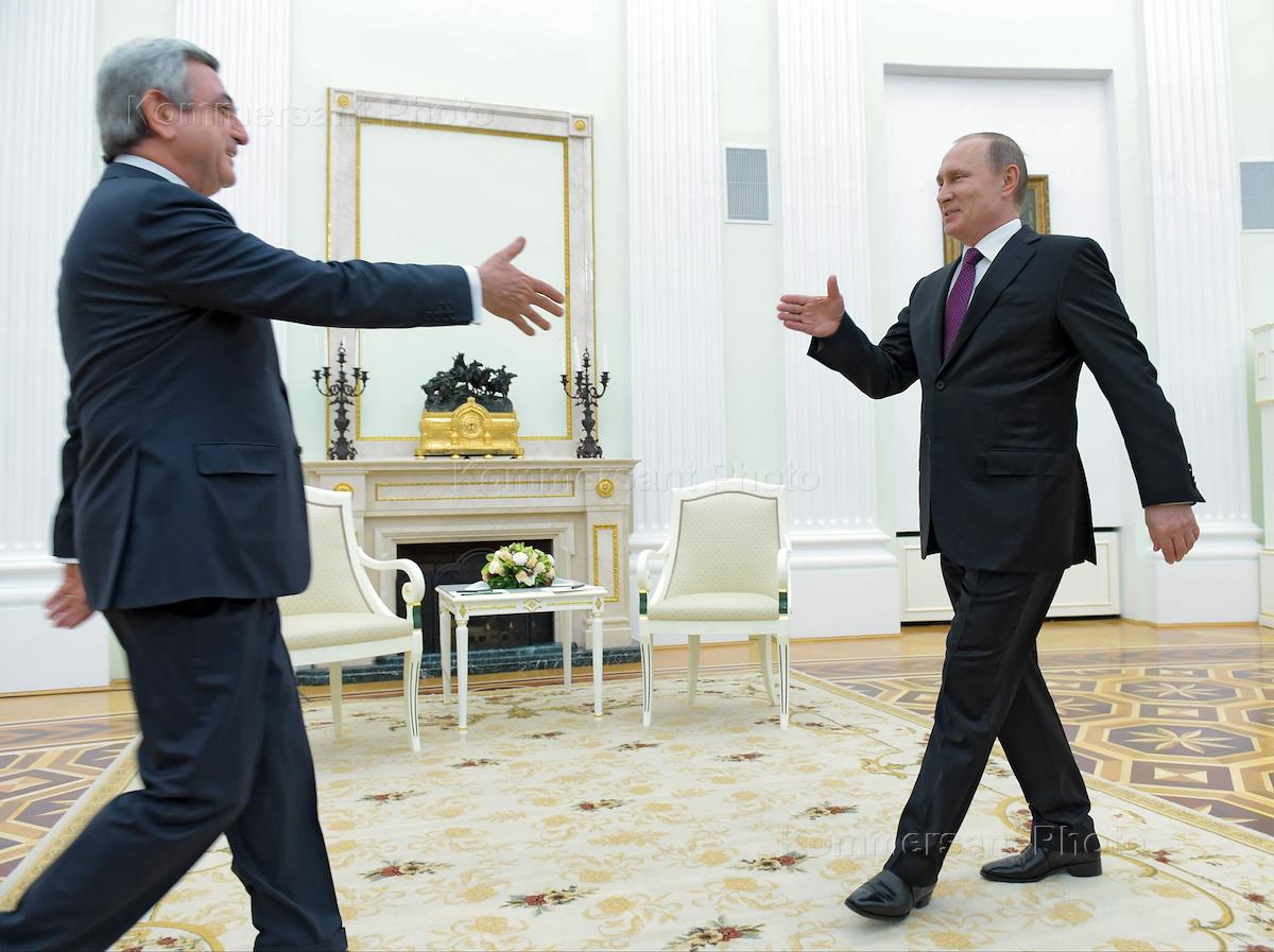 Президент Армении Серж Саргсян (слева) и президент России Владимир Путин (справа) во время встречи в Кремле.