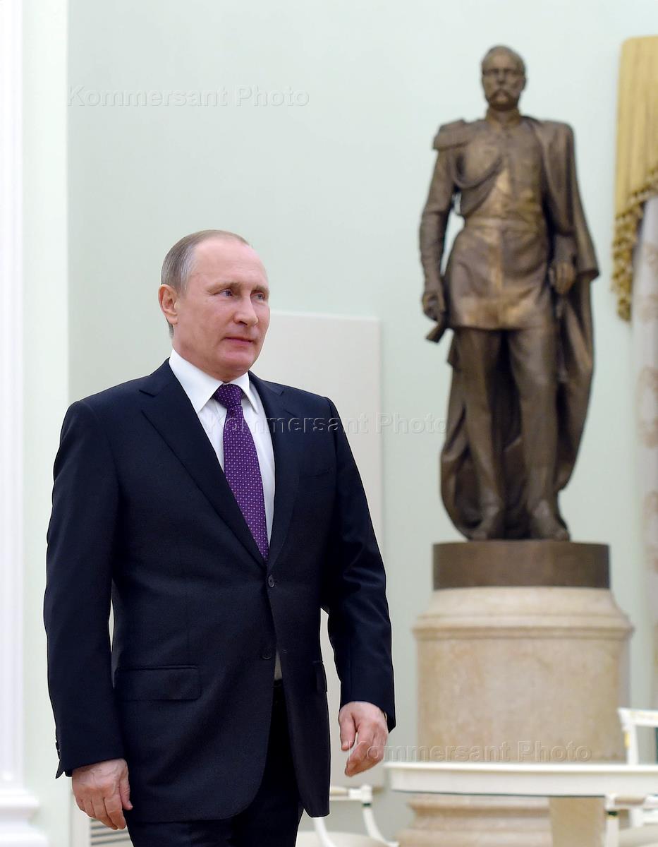 Президент России Владимир Путин перед началом встречи с президентом Сербии Томиславом Николичем в Кремле.