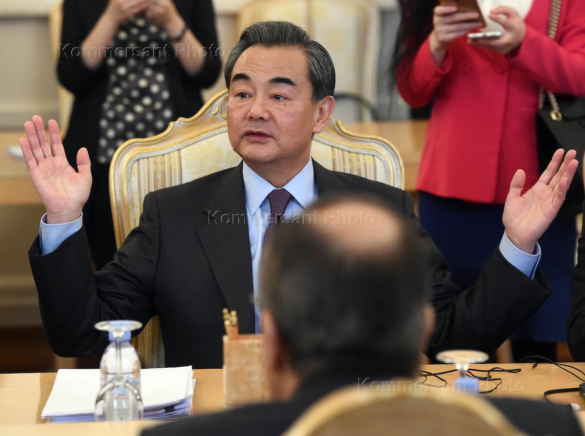 Minister of foreign affairs of the People's Republic of China Wáng Yí is during the meeting with Minister of foreign affairs of Russia Sergey Lavrov in the Reception House of the Russian Foreign Ministry.