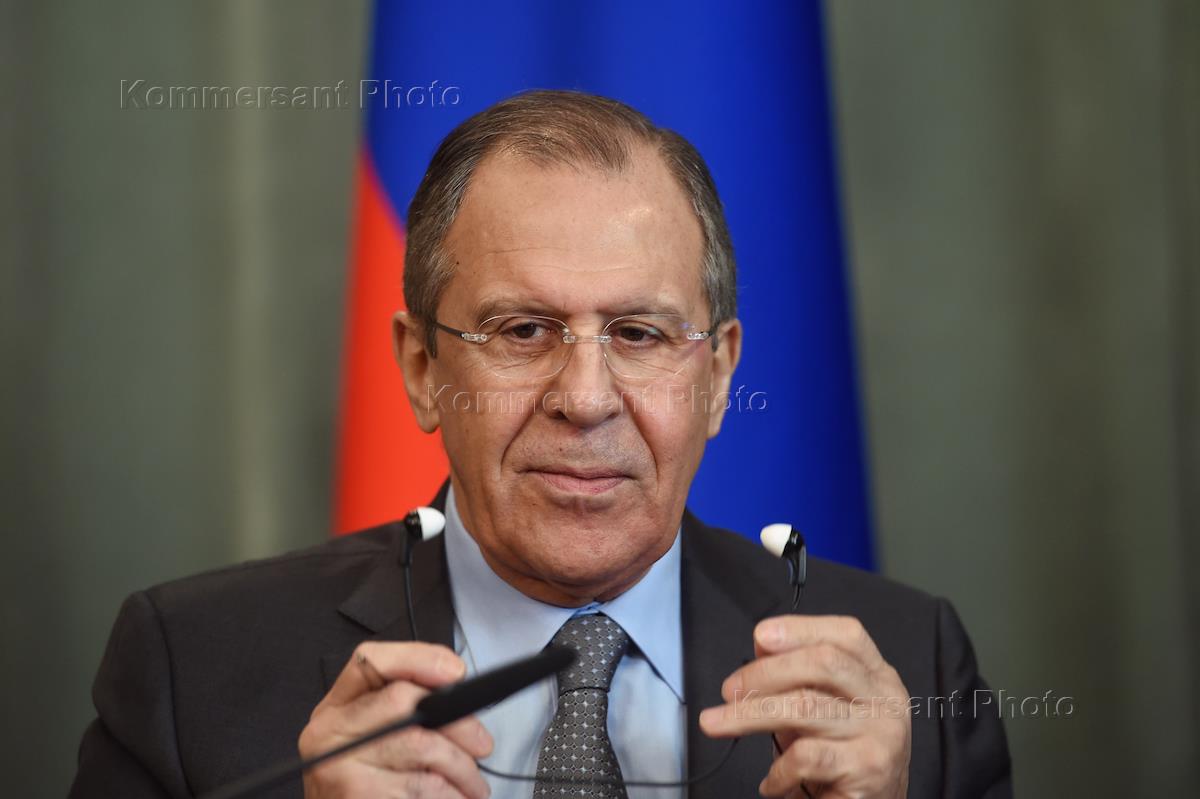Minister of foreign affairs of Russia Sergey Lavrov is at the press-conference on the results of the meeting with Minister of foreign affairs of the People's Republic of China Wáng Yí in the Reception House of the Russian Foreign Ministry.