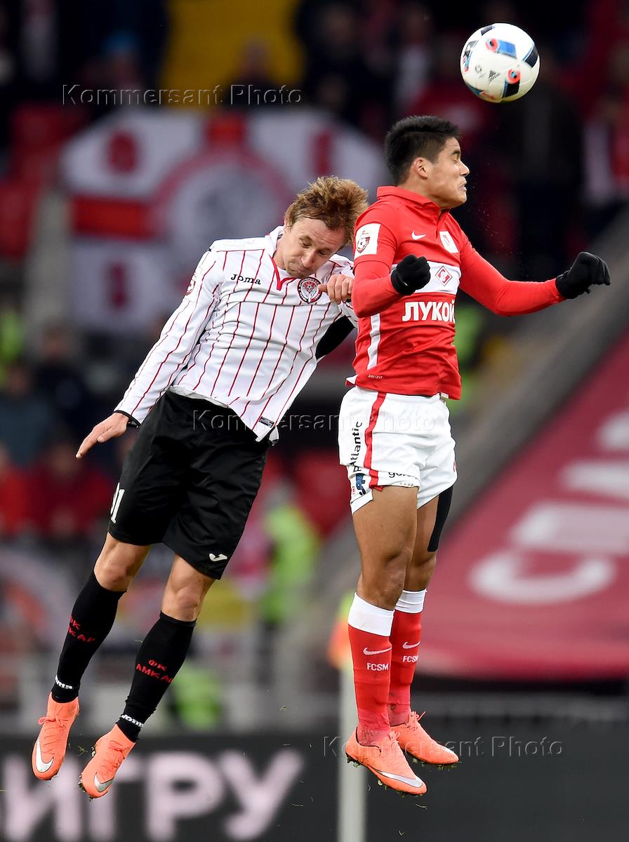 РОСГОССТРАХ - Чемпионат России по футболу 2015/2016. 20-й тур. Матч между командами "Спартак" (Москва) - "Амкар" (Пермь) прошел на стадионе "Открытие Арена". Футболист Лоренцо Мельгорехо (слева) во время матча.