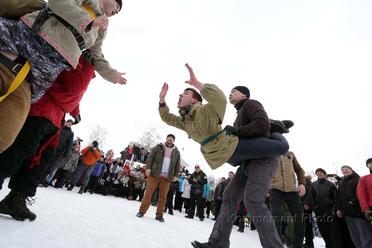 The Pancake week celebration. The Pancake week open-air parties and the farewell ceremony for winter in village Ilyinsky of the Perm region.
