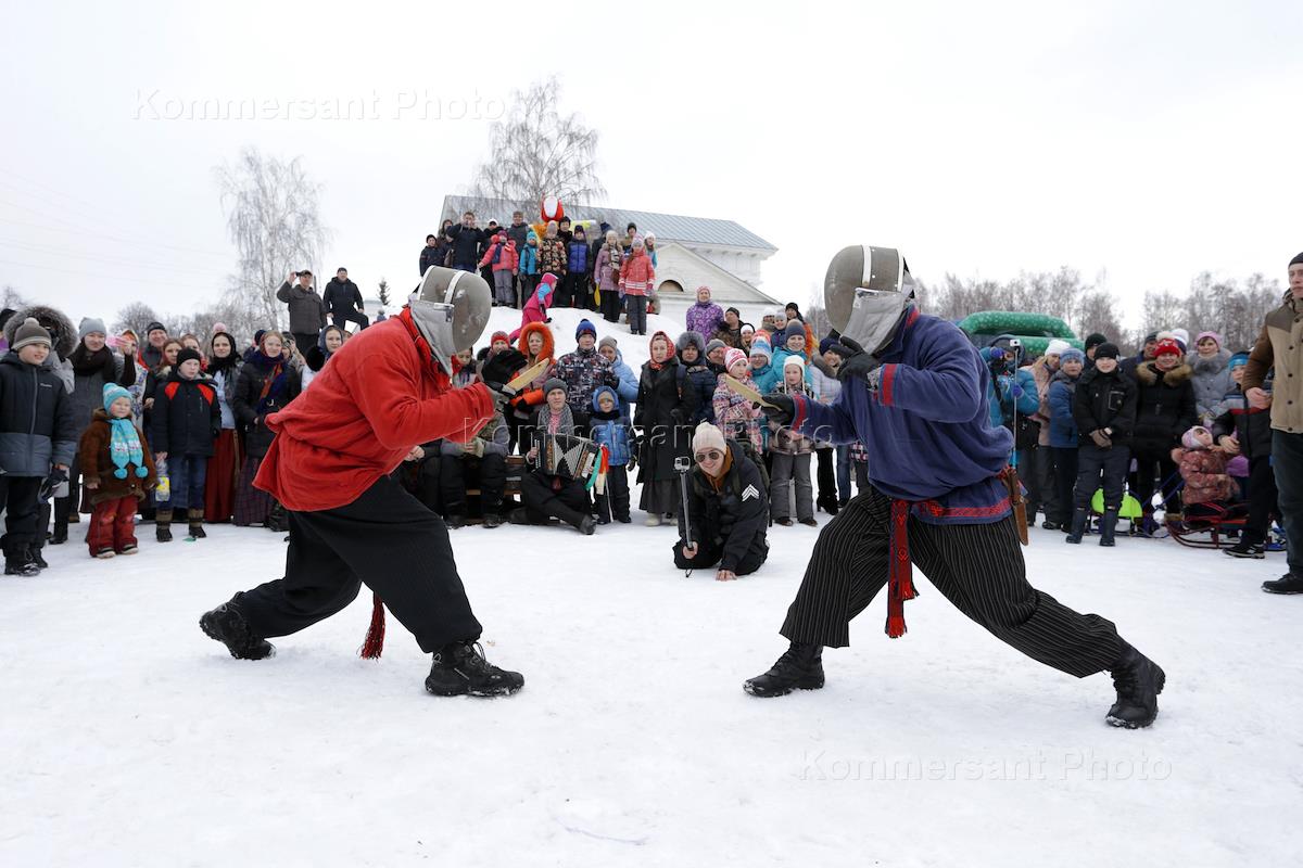 The Pancake week celebration. The Pancake week open-air parties and the farewell ceremony for winter in village Ilyinsky of the Perm region.