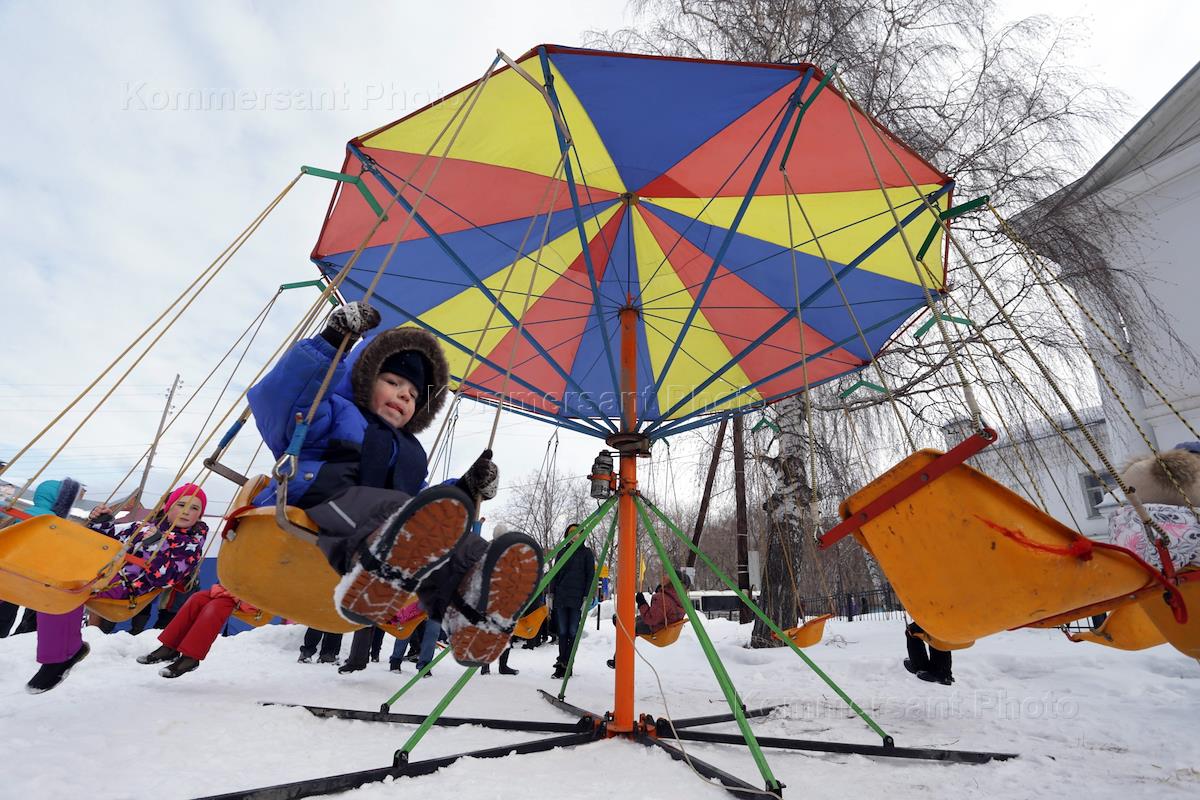 The Pancake week celebration. The Pancake week open-air parties and the farewell ceremony for winter in village Ilyinsky of the Perm region.