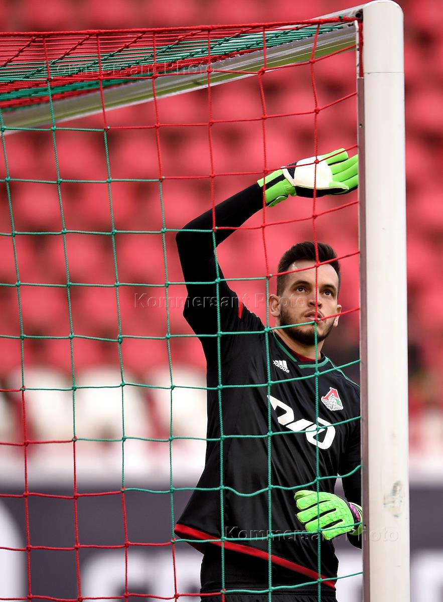 ROSGOSSTRAKH Russian Football Championship 2015/2016. The 20th round. The match between teams 'Lokomotiv' (Moscow) and 'Ufa' (Ufa) at stadium 'Lokomotiv'. Goalkeeper Guilherme Marinato is during the match.
