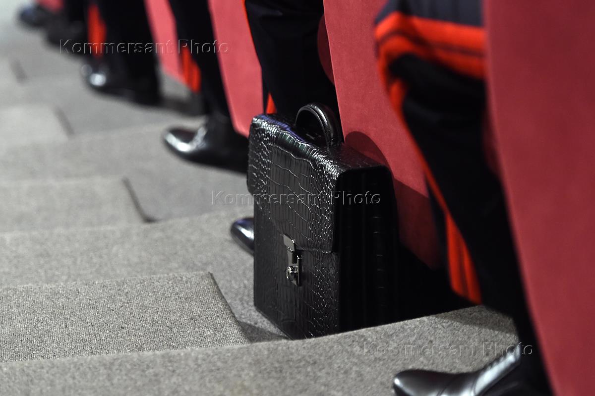 Слева направо: руководитель Администрации Президента Российской Федерации Сергей Иванов, президент России Владимир Путин, министр внутренних дел России Владимир Колокольцев, председатель Верховного суда РФ Вячеслав Лебедев на расширенном заседании коллегии Министерства внутренних дел (МВД) РФ.