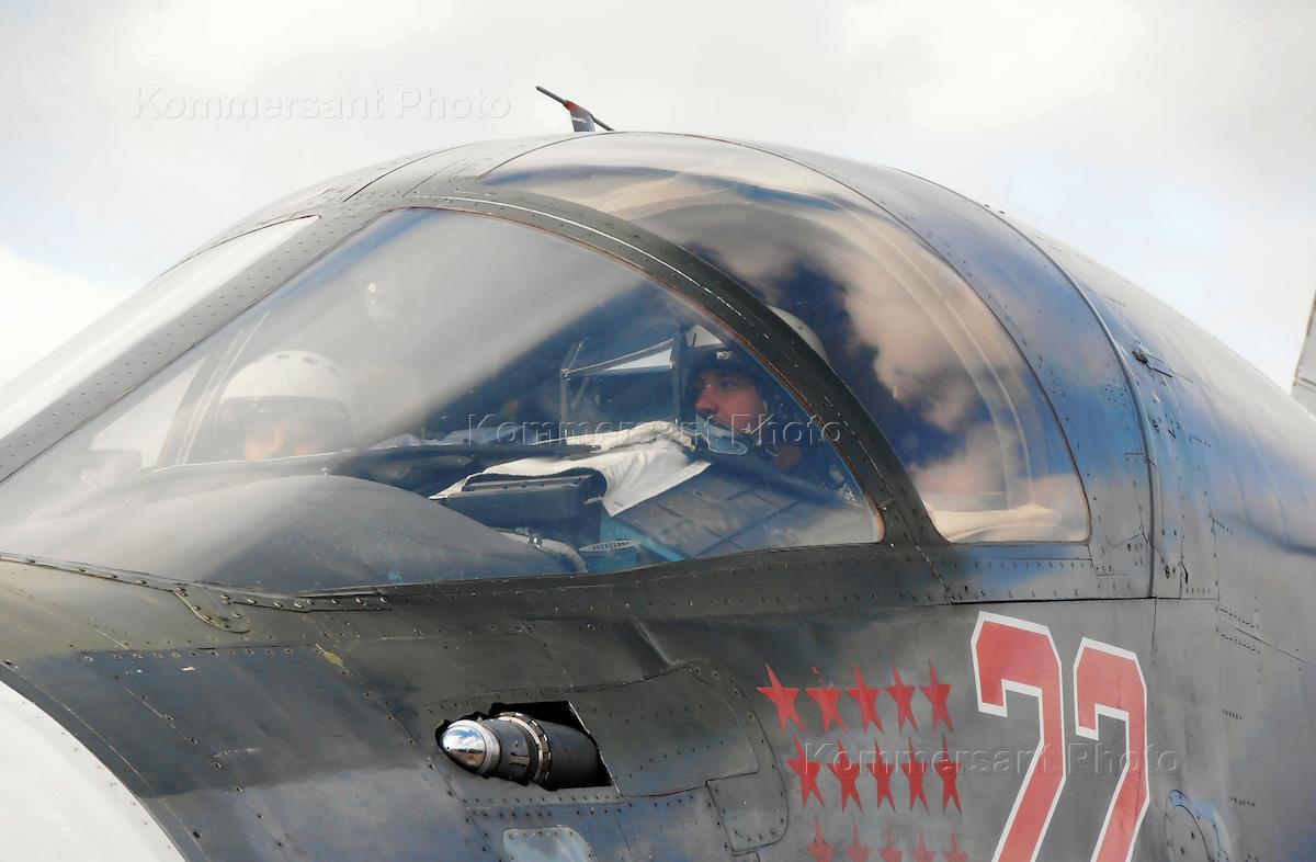 Первая группа вернувшихся из Сирии истребителей-бомбардировщиков Су-34 приземлилась на военном аэродроме в Бутурлиновке. Жанровая фотография. Звезды на борту самолета.