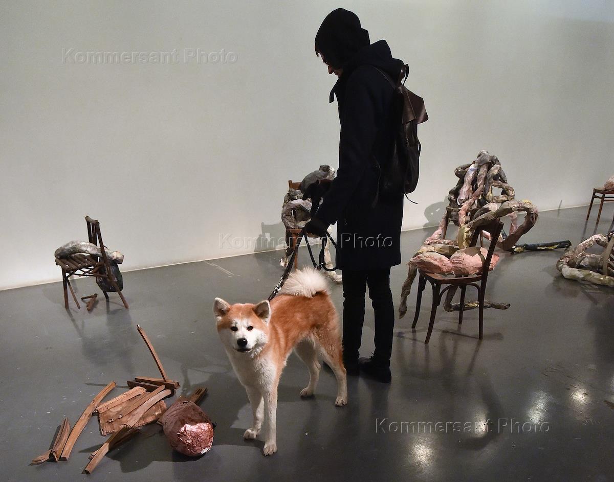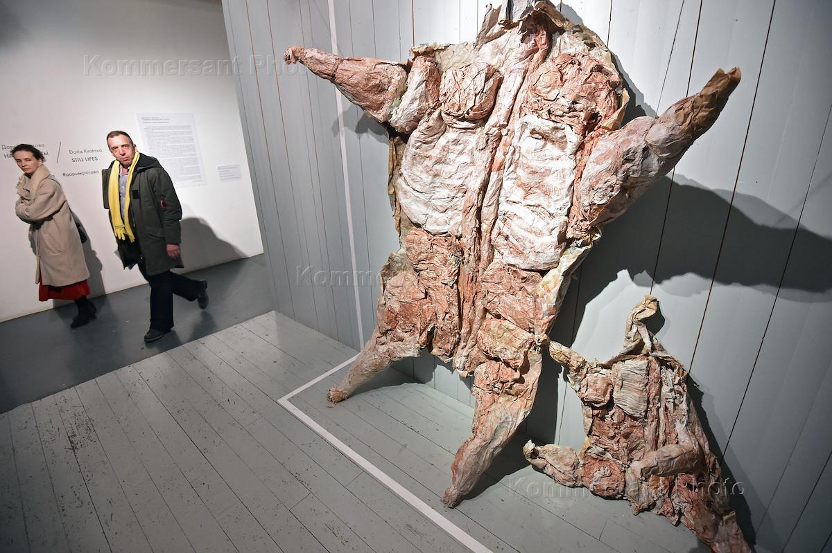 Посетитель на церемонии открытия выставки художника Дарьи Кротовой "Натюрморты" в галерее Печерской в Центре современного искуства "Винзавод".