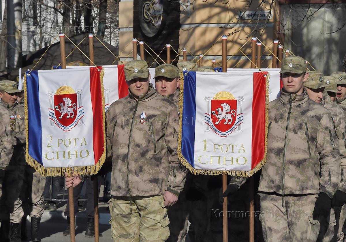 Военнослужащие во время праздничных мероприятий в честь второй годовщины воссоединения Крыма с Россией.