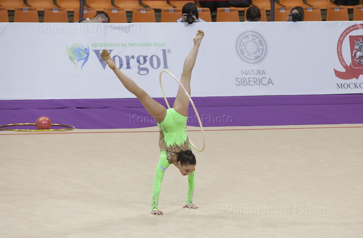 Russian gymnast Arina Averina is during the senior gymnasts competitions at Grand Prix 2016 in the Sports Complex Druzhba.