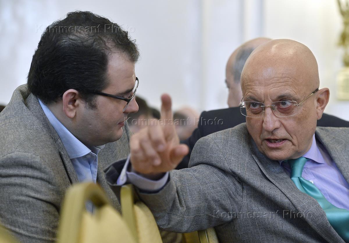 Former Prime-Minister of Italy, former chairman of the European Commission Romano Prodi (in the centre) is before his lecture during course 'Golden collection', which is conducted by magazine 'International life' with the support from the Ministry of foreign affairs of the Russian Federation. The lecture held in the residence of the Ministry of foreign affairs of Russia.