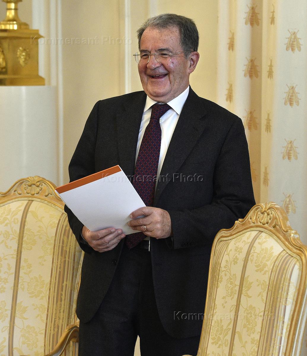 Former Prime-Minister of Italy, former chairman of the European Commission Romano Prodi (in the centre) is before his lecture during course 'Golden collection', which is conducted by magazine 'International life' with the support from the Ministry of foreign affairs of the Russian Federation. The lecture held in the residence of the Ministry of foreign affairs of Russia.