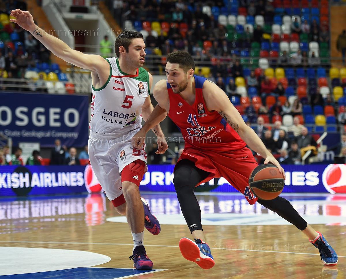 Basketball European League. The match between teams 'CSKA' (Moscow) and 'Laboral Kutxa' (Spain, Vitoria) in the sports centre 'Megasport'.